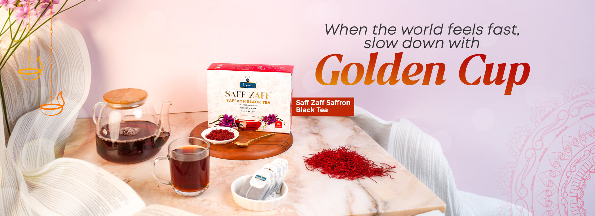 Feel the ultimate luxury with our Saff Zaff Saffron Flavoured Black Tea. This exceptional blend at Samaara combines the boldness of black tea with the captivating aroma of saffron, resulting in an extraordinary experience.